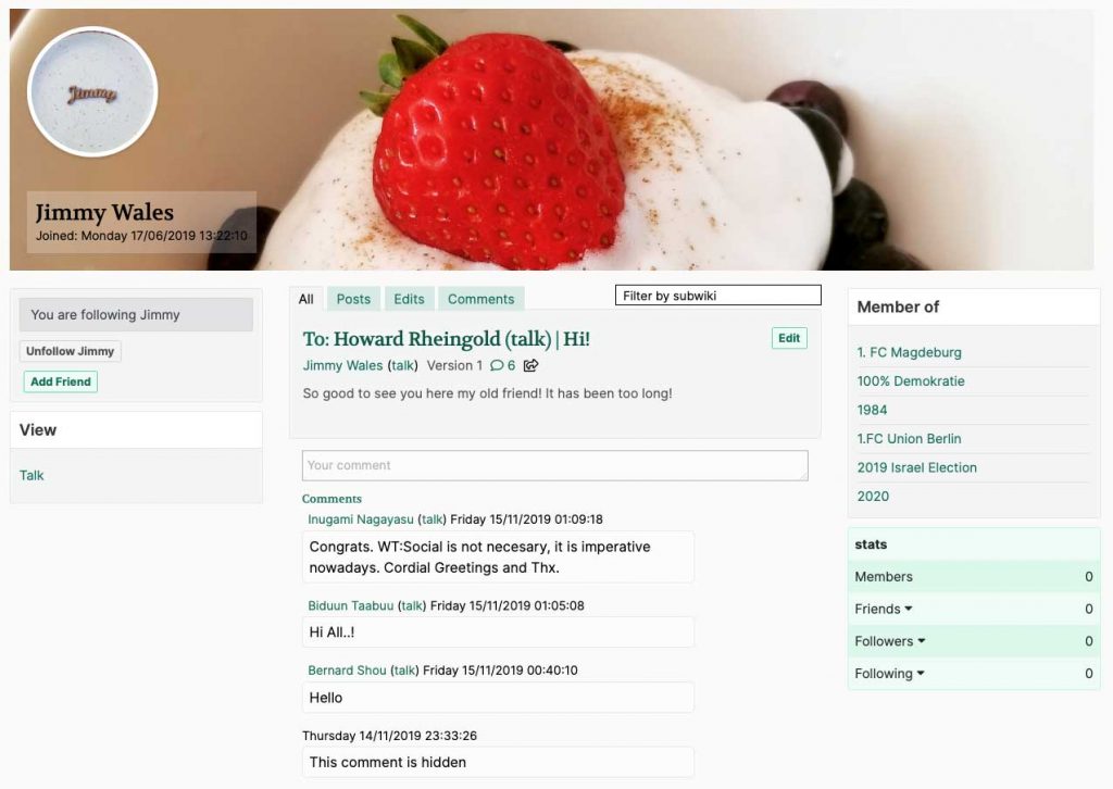 (Wikipedia)联合创始人 Jimmy Wales 不久前低沉推出交际网络服务WT:Social